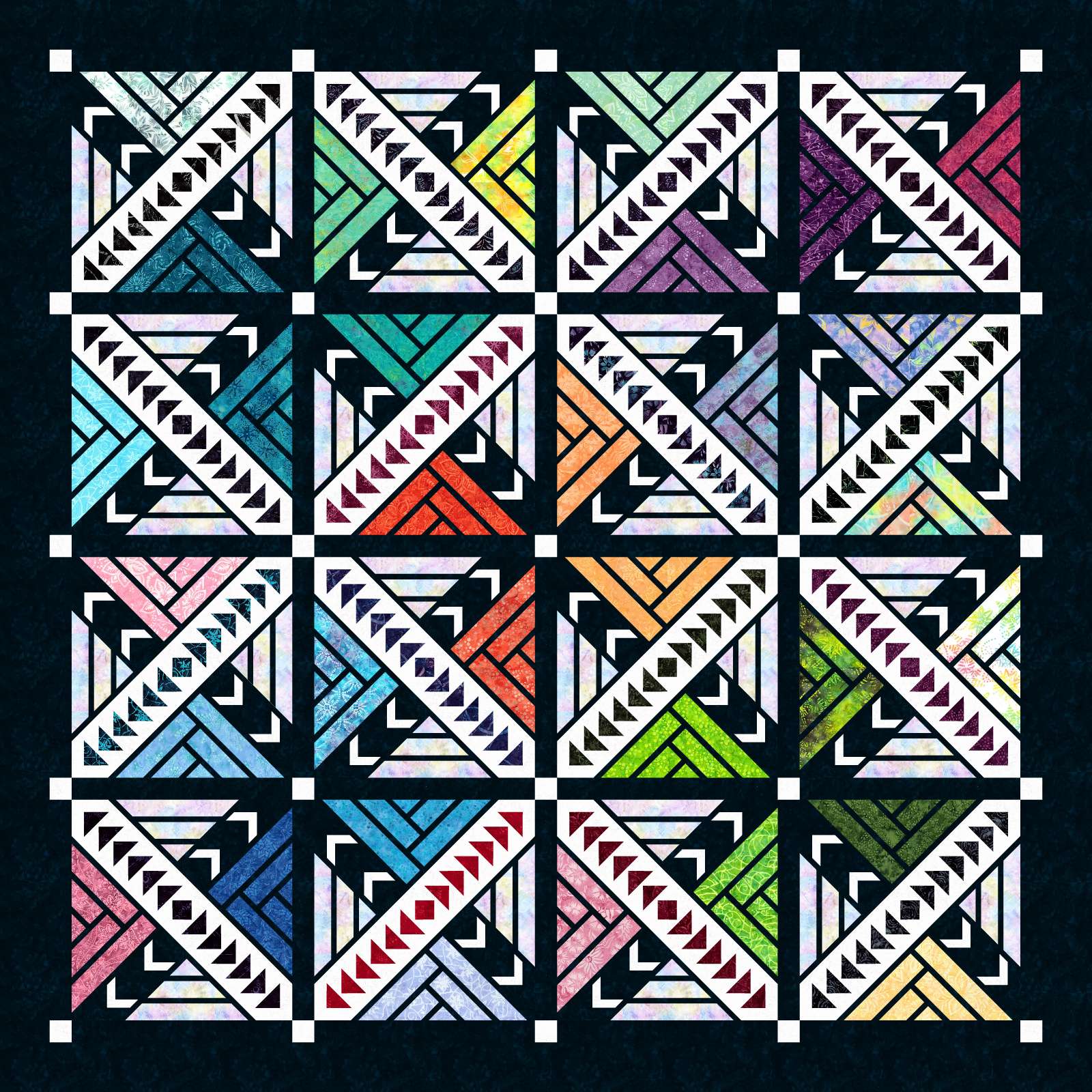 Crossroads: Caribbean SnS Colorway Kit includes: Caribean 2 1/2" strip set & Fabrics to complete quilt top including binding, Pattern depending on option selected