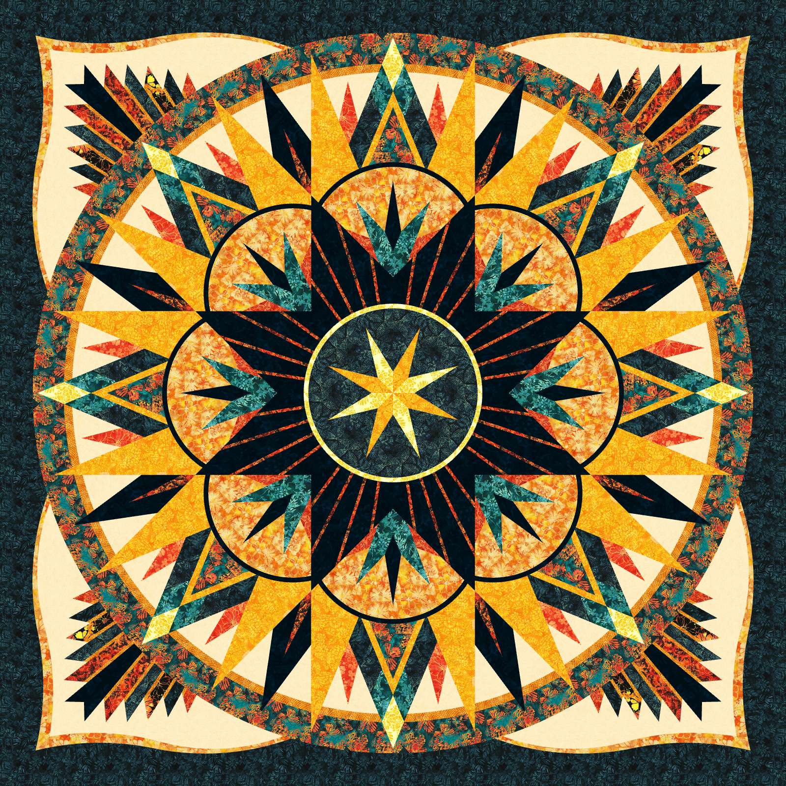 The Western Monarch is a foundation paper pieced pattern by Quiltworx.com. This kit is the original coversheet colorway created out of Hoffman Batiks from the Monarch Migrations collection. The colorway and block layout was created by Judel Niemeyer in Quiltster and requires 18-1/2 yards of fabric, including the binding. It can be purchased with or without the pattern.