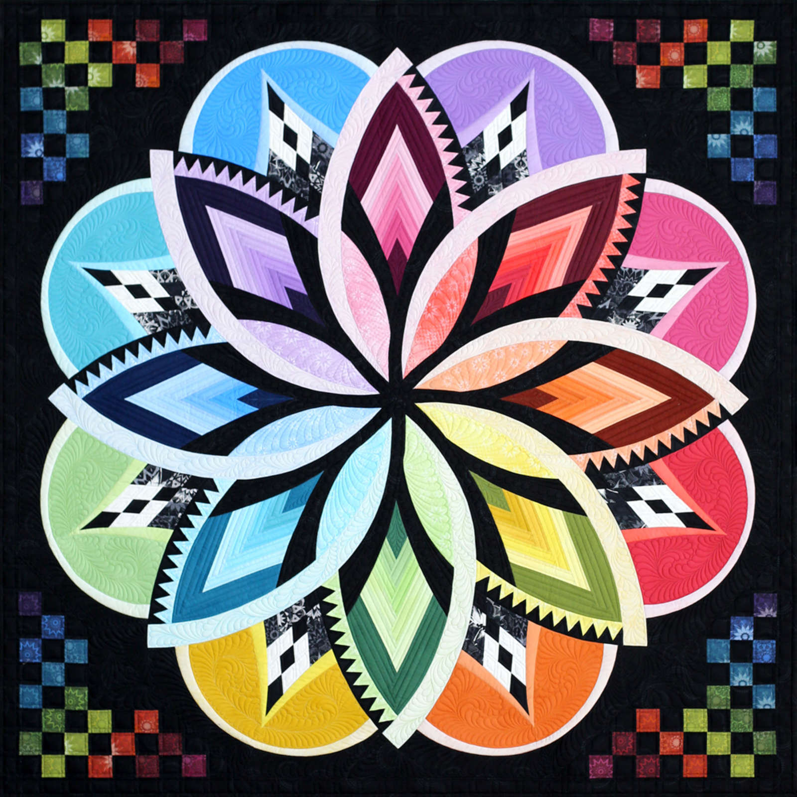 We are so excited to introduce to you, Luminary! A quiltworx design using ColorStock Cotton Basics designed by Judy and Judel Niemeyer, from Timeless Treasures. This pattern perfectly demonstrates how thoughtfully curated the ColorStock Cottons fabric palette is. The 68" wall quilt uses 68 fabrics, (4) in coordinating Black and White prints, and the other (64) from across the rainbow spectrum from light to dark. Each color group makes a perfect transition from one color to the next, for a beautiful, luminous impact that catches the eye of everyone that sees it. These kits come with all of the fabrics cut and organized by color group. Everything in the pattern is labeled so when you open the pattern, you pick up your R1 to PK8 fabrics, and follow the cutting instructions for that group...then quickly move on to the next. No need to source fabrics or find a quilt shop willing to cut 1/8th yard cuts when you can simply purchase the kit and have it labeled and ready with everything you need! This design requires 16-7/8 yards of fabric, including the binding, and can be purchased with or without the pattern.