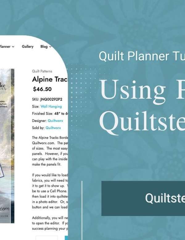 The Alpine Tracks Border is a foundation paper pieced pattern by Quiltworx.com, designed to beautifully frame panels in a variety of sizes. The easiest panel sizes to work with are 24", 30", or 36". However, panels don’t have to be exact. If your panel dimensions vary slightly, you can adjust the inner square-up sashing strips (both length and width) to achieve the perfect fit. Planning with your own panel in Quiltster? You can absolutely do that! To display correctly in the Quilt Planner, your panel will need to be placed on a 44" square background and centered. This can be done using a mobile device or a photo editing tool. Need help? Scroll down to Pattern Resources for a full tutorial that walks you through: - How to upload and format your own panel for use in Quiltster - How to find pre-loaded panels that are ready to use in the Quilt Planner Follow these tips, and you’ll be well on your way to planning a stunning panel quilt with confidence. Email us through the Support option in the main menu with any questions. Happy Quiltstering!